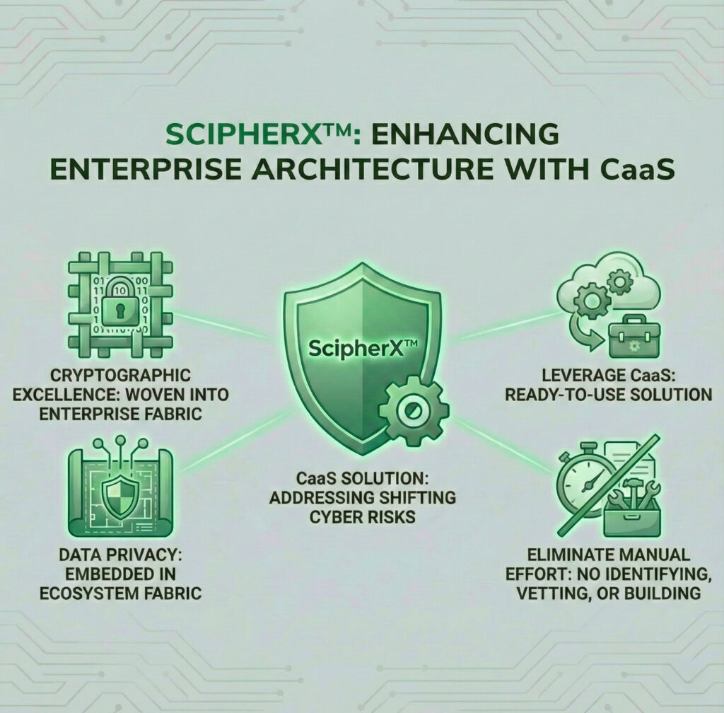 In an era of evolving digital threats, ScipherXTM provides a sophisticated defence layer designed to secure applications and drastically minimize operational risk. The platform does not just add security; it enhances the entire enterprise architecture by weaving cryptographic excellence and data privacy into the very fabric of the ecosystem. Instead of spending time identifying, vetting, and building tools and services to secure the enterprise, leverage ScipherXTM‘s CaaS solution to address shifting cyber risks.